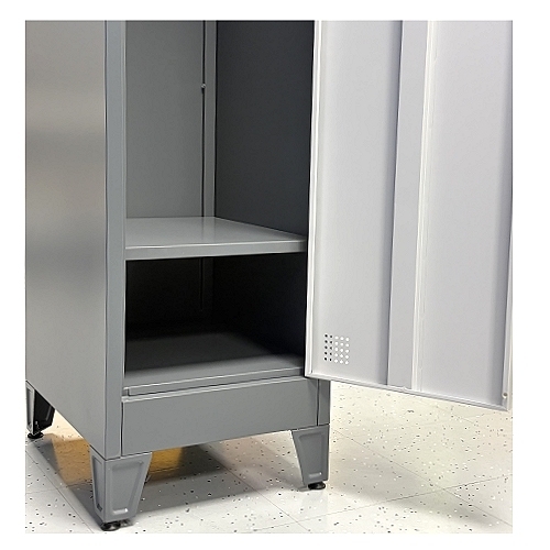 - Locker doors are equipped with reinforcement ribs and nameplate holders.